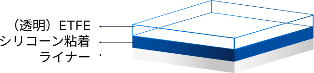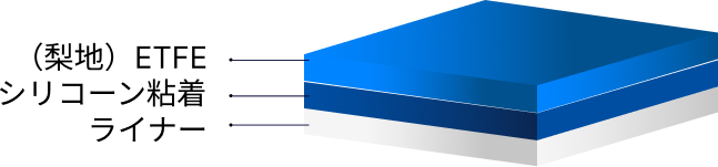 ETFE (Ethylene Tetra Fluoroethylene) テトラフルオロエチレンとエチレンの共重合体。フッ素にエチレンの特徴が付与されるため、耐熱性、耐寒性、防湯性以外に加え透明性や、伸び、フィルムの耐久性、成形性があるフィルムになります。屋外用途や半導体用途でも実績の多いフィルムになります。