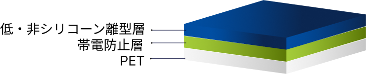 近年需要の高まっている低・非シリコーンセパレーターです。軽剥離から超重剥離まで幅広いバリエーションをラインナップしております。また、PETフィルム含め、様々なフィルム・厚みにも対応しています。